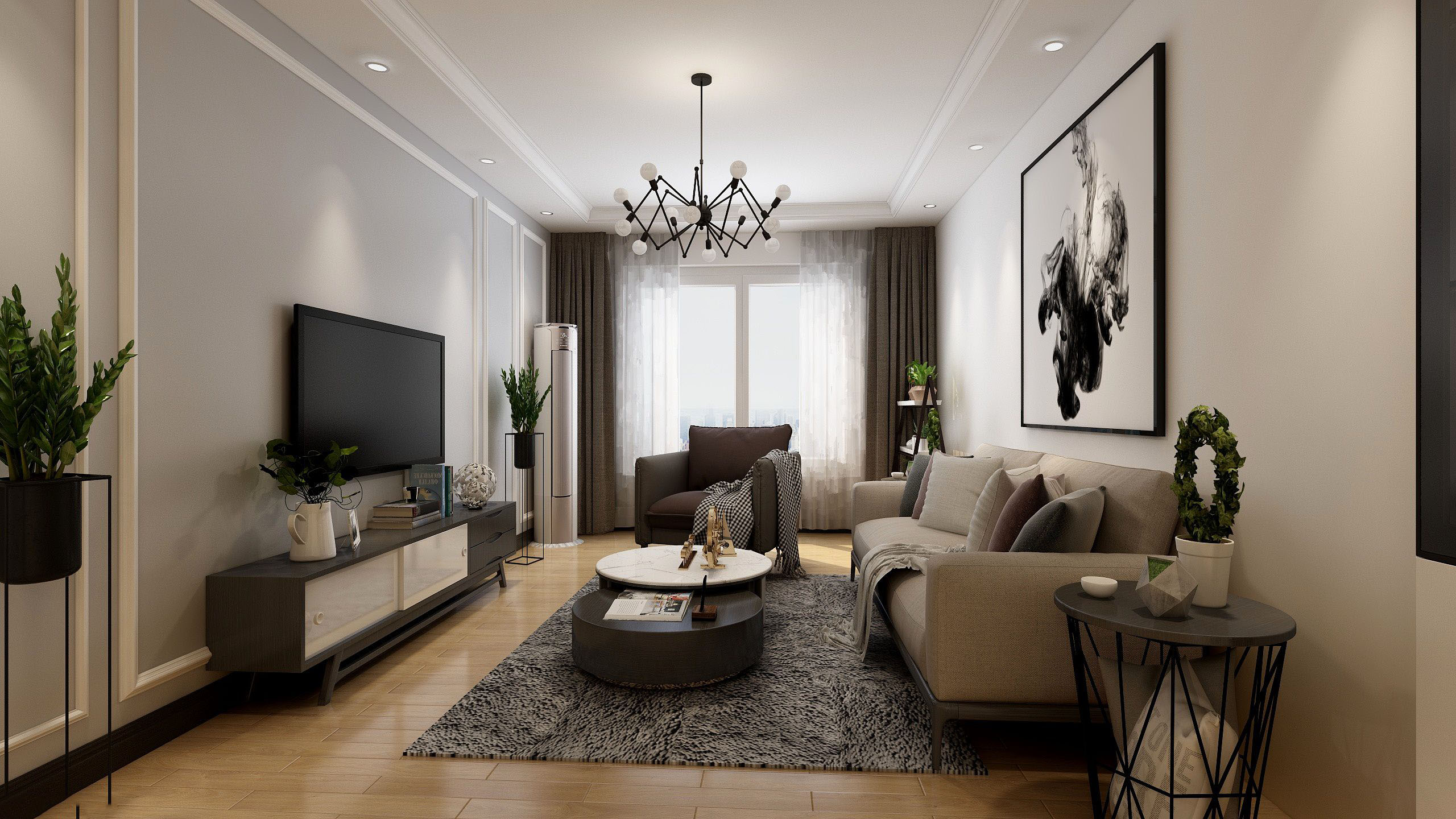 婚房,小两口,喜欢运动 ,喜欢简单大气风格,喜欢阅读 主色调 以白色为主,背景墙乳胶漆做点缀,所有设计简单不繁琐,搭配布艺沙发,全部以舒适为前提,在劳累工作后得到心灵上的放松。