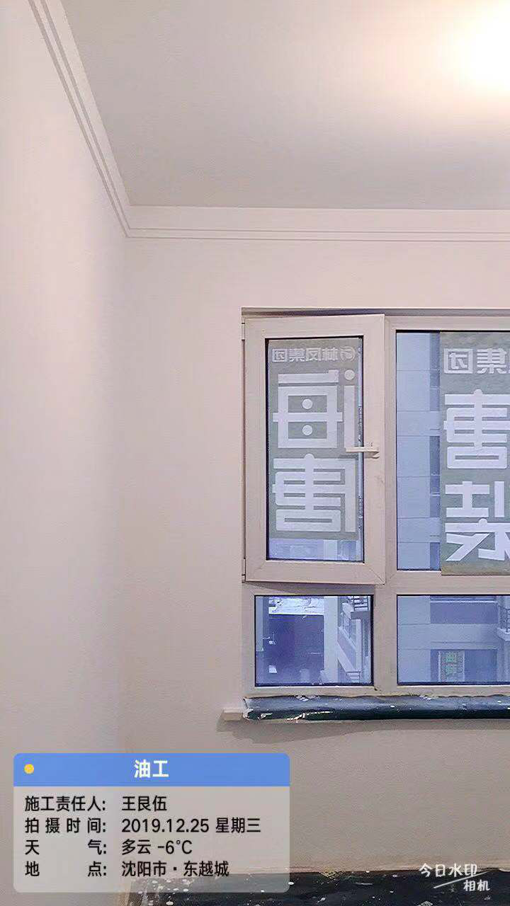 现在是房子装修的油工验收阶段,漆面无明显阴包等问题,整体平整光滑无磨损,反光均匀,客厅采光效果好,所以背景墙选用个性的土灰色,区分客厅整体效果的同时又不失素雅,阴角阳角平整无刮碰。